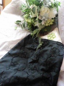 もう一つは、梅の花の刺繍がほどこされた、舶来生地のシルクのスカート。